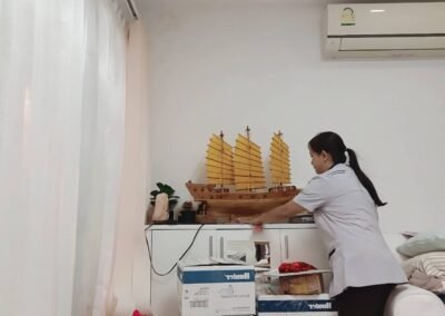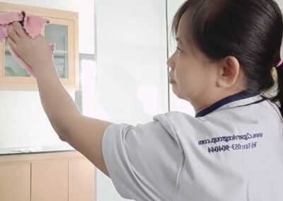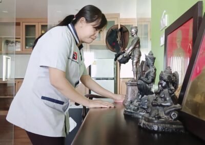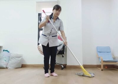 เช็ดทำความสะอาดทำความสะอาดเฟอร์นิเจอร์ต่างๆ ทำความสะอาดผนังและห้องน้ำ เช็ดทำความสะอาดขอบเฟรมกระจกและกระจกด้วยน้ำยาทำความสะอาดโดยเฉพาะ ทำความสะอาดพื้น ด้วยน้ำเฉพาะตามลักษณะของพื้นตัวบ้าน