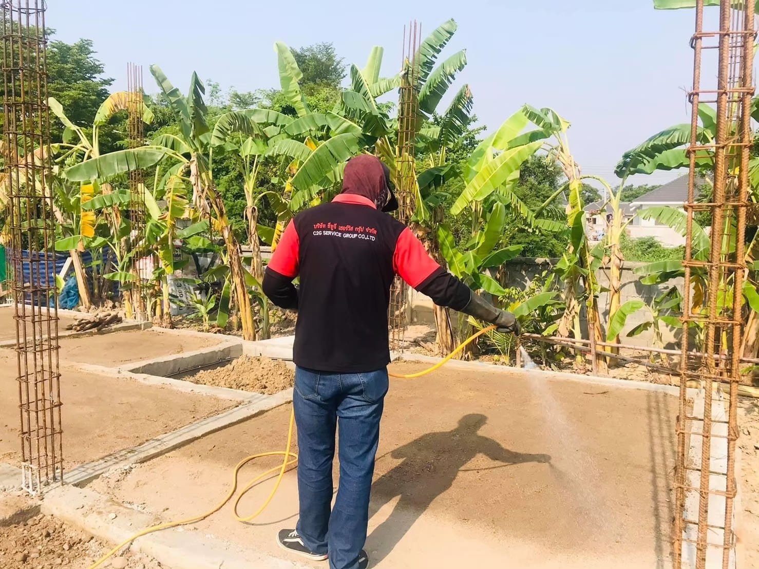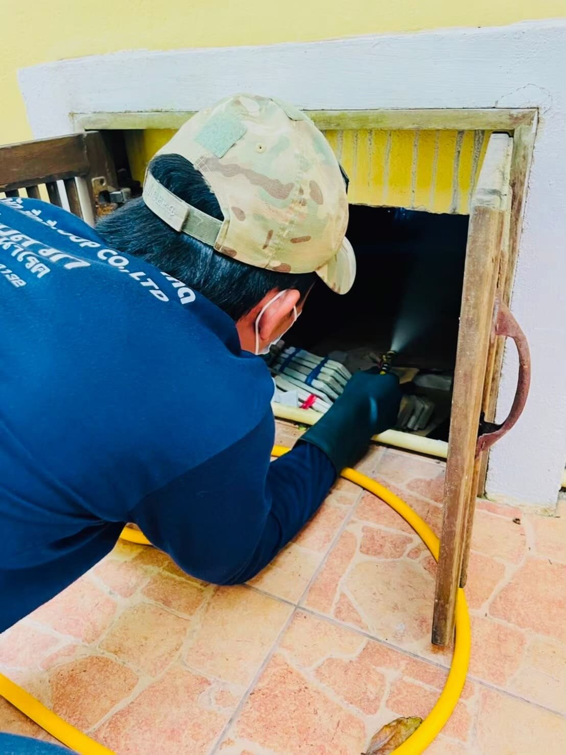 การอัดสารเคมีลงดิน ตามจุดเสี่ยงต่างๆ ป้องกันปลวกขึ้นโครงสร้างและกำจัดปลวก